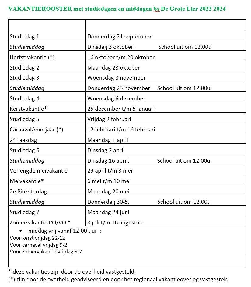 Vakantierooster 2025-2026